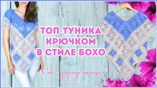 Шикарный двуцветный топ (туника) в стиле Бохо из больших квадратных мотивов