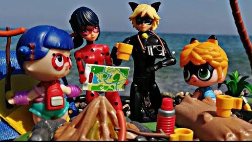 Мама Леди Баг, папа Супер-Кот и дети в походе с палатками! Семья Леди Баг на море!