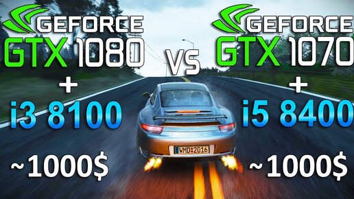 GTX 1080 + i3 8100 vs GTX 1070 + i5 8400 Test in 8 Games