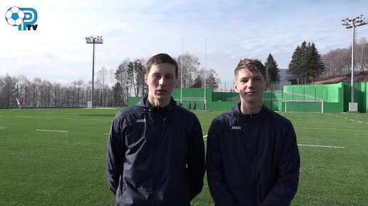 Нападающий ФК Ротор Дмитрий Лаврищев и полузащитник ФК Ротор Сергей Михайлов