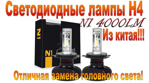 Обзор LED ламп H4 N1/4000Lm и сравн. с галоген -Overview LED lamps H4 N1 and comparison with halogen