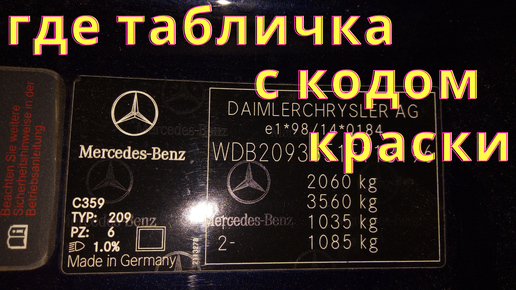 Где табличка с кодом краски мерседес CLK . 2004 г.в. код ( С359 ).