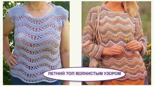 ЛЕТНИЙ ТОП АЖУРНЫМ ВОЛНИСТЫМ УЗОРОМ 490 Вязание спицами Видеоуроки