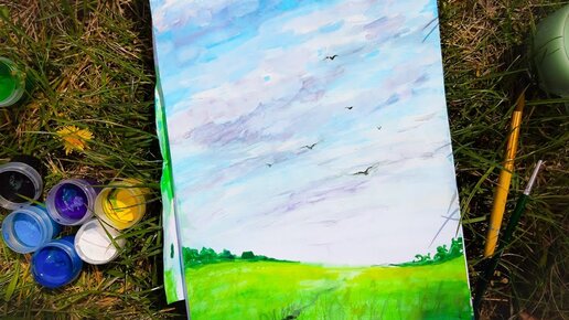 ПОЛЕ |Простой пейзаж гуашью🎨