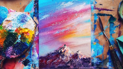 ГОРЫ И РАССВЕТ |Рисуем красками просто💫