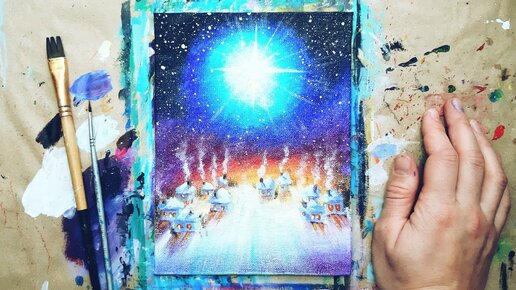РОЖДЕСТВЕНСКИЙ ВЕЧЕР |Рисуем поэтапно красками🎨