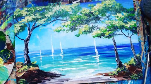 СРЕДИЗЕМНОМОРЬЕ |Бирюзовый пейзаж |Акрил/Гуашь