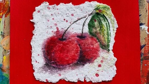 ДВЕ ВИШНИ |Акварель на самодельной бумаге❤