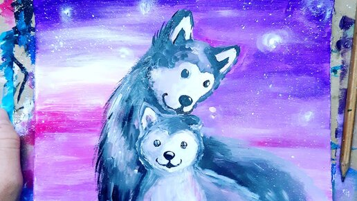 ХАСКИ |Мама и малыш |Рисуем пошагово красками🤞