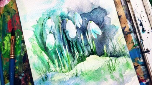 ПОДСНЕЖНИКИ |Акварель| Как рисовать без белой краски🤍