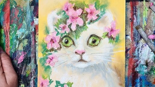 КОШКА и ВЕСНА |🌱|Рисуем март✌Сухая пастель, можно красками