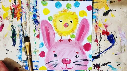 КРОЛИК и ЦЫПЛЕНОК |Рисование красками для детей| Пасхальная открытка!