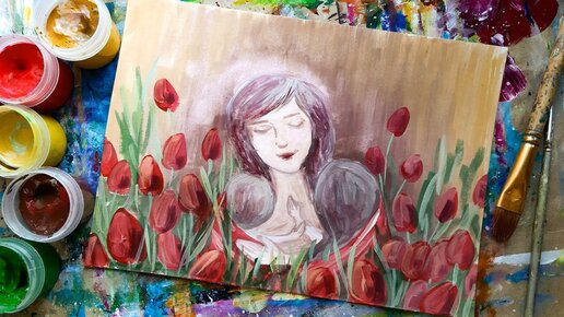 МАМА И ЕЁ ДЕТКИ |Открытка гуашью❤