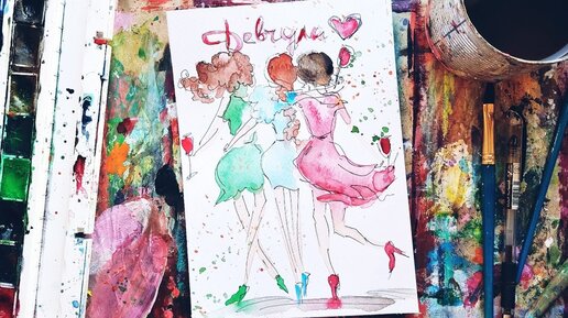 ПОДРУЖКИ |Аква-скетч ✌Открытка своим девочкам🎨