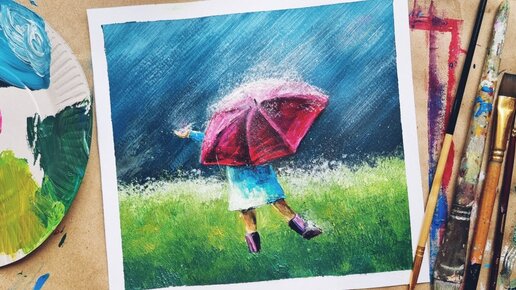 ПОД ДОЖДЁМ |Поэтапно рисуем красками🎨