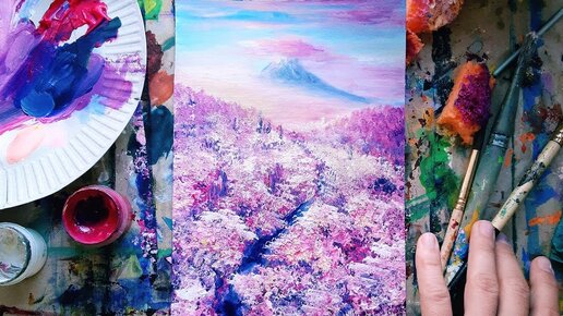 ФУДЗИЯМА |Розовые краски 💝 Как нарисовать рассвет