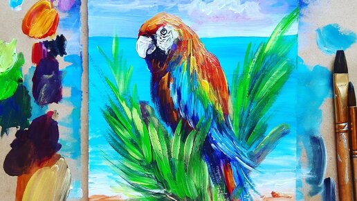 ПОПУГАЙ |Рисуем тропики красками🌴
