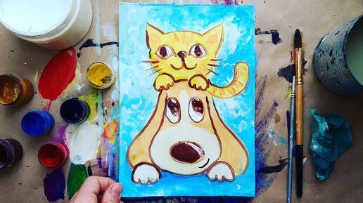 КОТ и СОБАКА |Рисование гуашью для детей✌