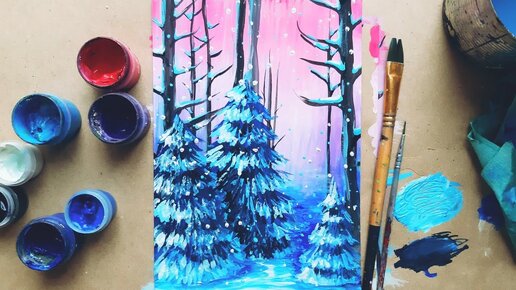 ЗИМНИЙ ЛЕС |Рисуем гуашью просто🎨Запись прямого эфира