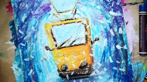 ТРАМВАЙ |Масляная пастель, можно красками✌