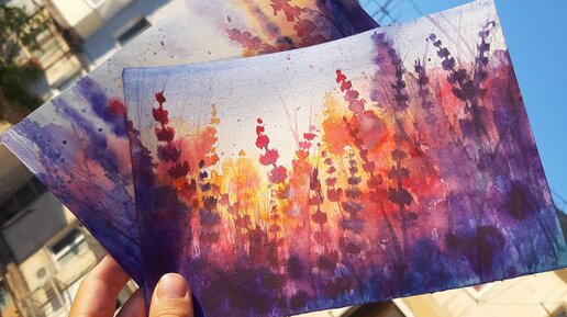 ЛАВАНДОВЫЙ ЗАКАТ | Акварель👐