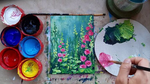 МАЛЬВЫ |Цветы из детства| Как нарисовать красками просто🙏