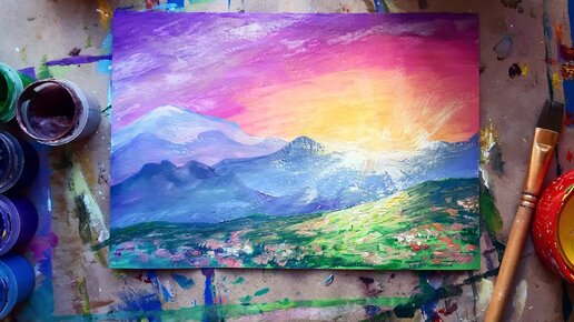 РАССВЕТ В ГОРАХ |Гуашь✌Рисуем просто шаг за шагом