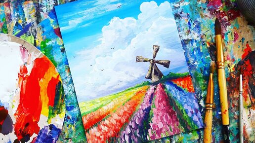 МЕЛЬНИЦА| Голландский пейзаж|Строительными красками✌
