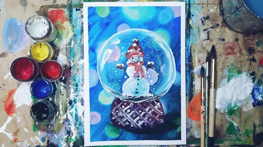 СНЕЖНЫЙ ШАР |Снеговик, эффект боке и гуашь✌