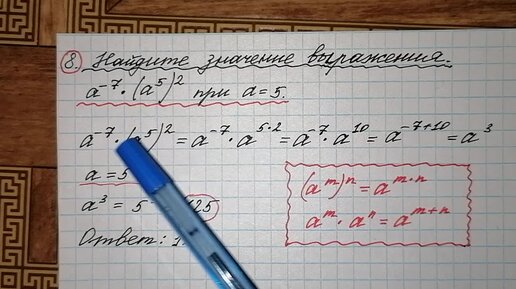 8)Найдите значение выражения a^-7•(a^5)^2 при a=5. Номер 8 ОГЭ 2021 математика демоверсия решение.