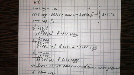 210)Во время Великой Отечественной войны за 1942, 1943 и 1944 годы было произведено 84800 боевых самолётов. В 1943 году было произведено 29900