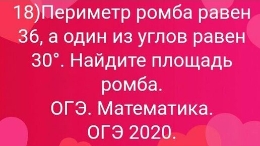 Периметр ромба равен 36, а один из углов равен 30°. Найдите площадь ромба.