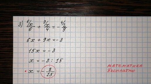 Решить уравнение x/6+x/4=-2/9. Решить уравнение x/6+x/4=-2/9. Канал Математика бесплатно.