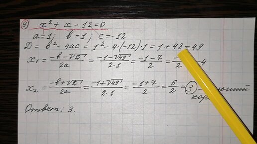 9)Решить уравнение х^2+х-12=0.Если уравнение имеет более одного корня, в ответ запишите больший корень