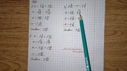 281)Решить уравнения. 1) х + 7 4/15 = 9 7/10. Номер 281 по математике 6 класс Мерзляк учебник.