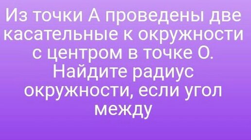 17)Из точки A проведены две касательные к окружности с центром в точке O. Найдите радиус окружности, если угол между касательными равен 60°, а
