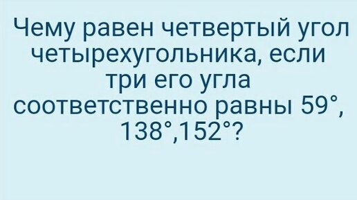 Чему равен четвертый угол четырехугольника, если три его угла соответственно равны 59°, 138°,152°?