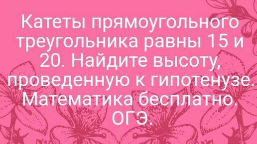 24)Катеты прямоугольного треугольника равны 15 и 20. Найдите высоту, проведенную к гипотенузе. Математика бесплатно. ОГЭ.