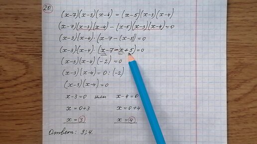 Решить уравнение (x - 7)(x-3)(x-4)= (x-5)(x-3)(x-4)
