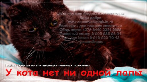 Безлапый кот Илай который живет в приюте Дари добро Новосибирск Animals with disabilities need help