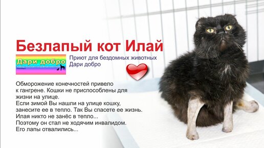 Кот инвалид без лап спасение бездомных животных animal shelter
