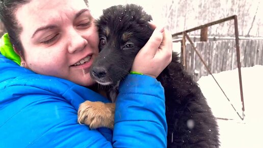 Встреча хозяйки и бездомного щенка 😃 это конец голодной уличной жизни Пристроили собачку в деревню.