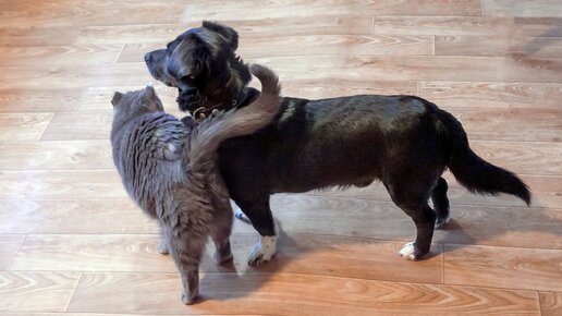 Будете улыбаться до конца ролика ) Дружба кота и собаки в приюте для животных Дари добро Нск