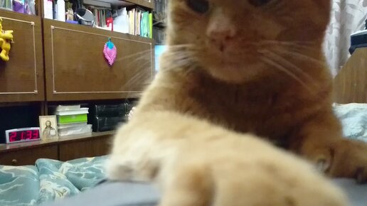 Рыжий кот Феликс пришёл серьёзно поговорить "за корм", пустив в ход всё своё кошачье обояние...