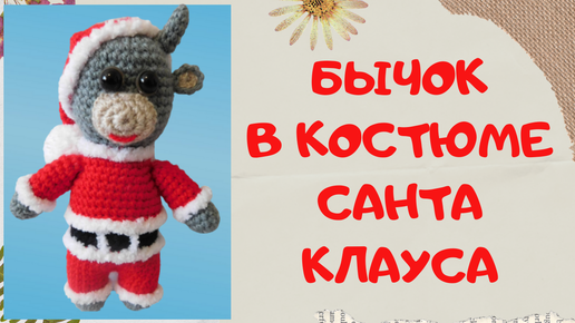 Новогодняя игрушка Бычок в костюме Санта Клауса | Символ 2021 | Вяжем игрушки амигуруми крючком