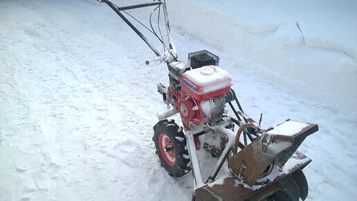 Снегоуборщик из мотоблока, чистим метровый снег.