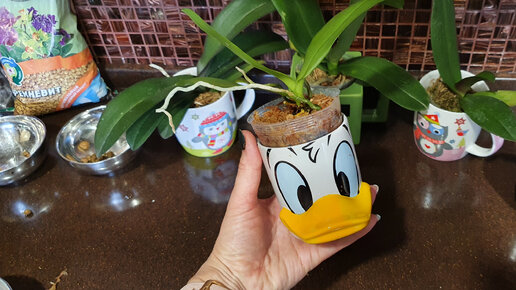 Убираем торфстакан и сажаем купленную мини-орхидею