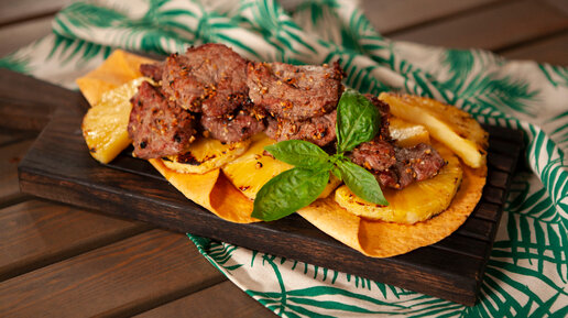 Сочная говядина на гриле с арахисом / Ананас гриль на гарнир