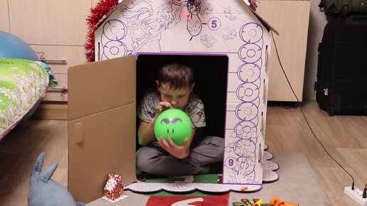 Учим цвета шариков Ярослав лопает воздушные шарики у домика
