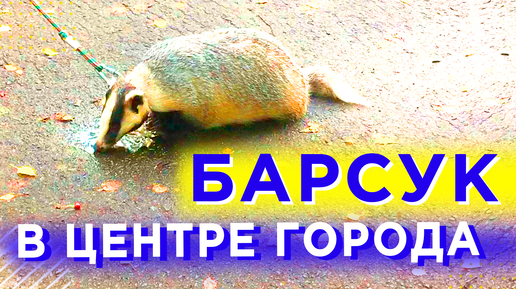 🔹Барсук в центре города🔹 гуляет на поводке и пьет из лужи 🔹